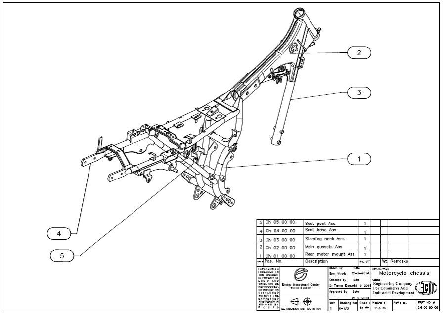 6- project name: workshop drawings for all the parts of the motorcycle chassis by reverse engineering according to the Specimen.